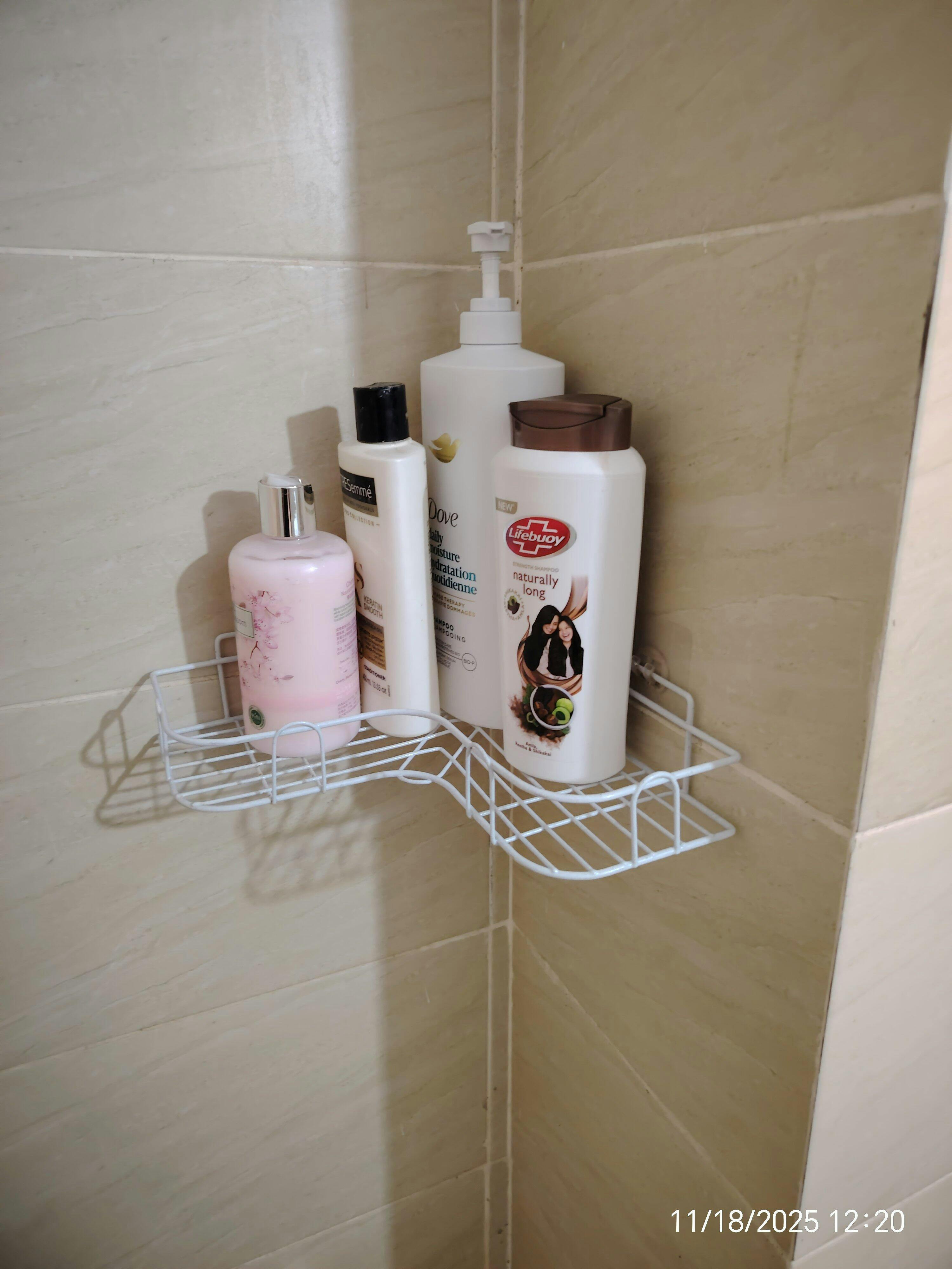 Multipurpose- Convenient to hange towels, brushes, bath balls etc. Made of iron, good load-bearing. Wall mounted, traceless self-adhesive wall shelf. Space Saving. Multifunction. Installation Guide: Pacakage Contains: 1 * Rectangle Metal Stand With Hooks...
